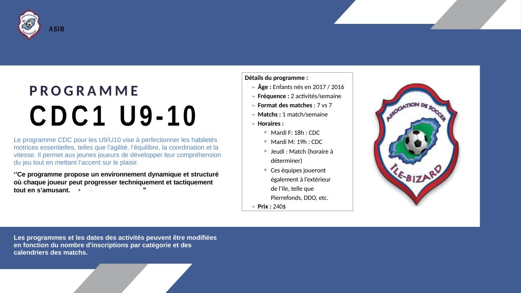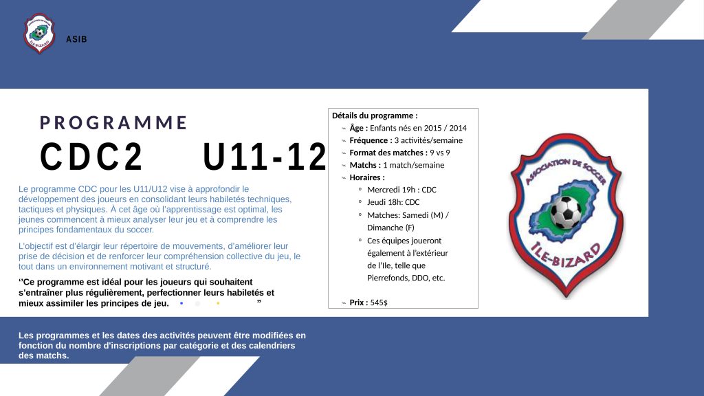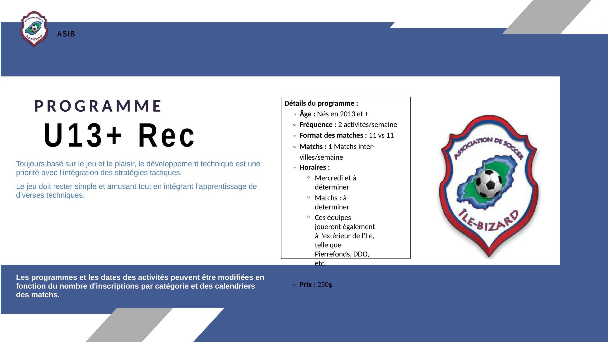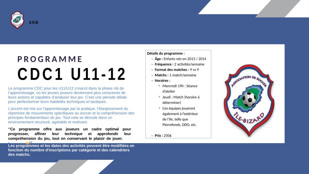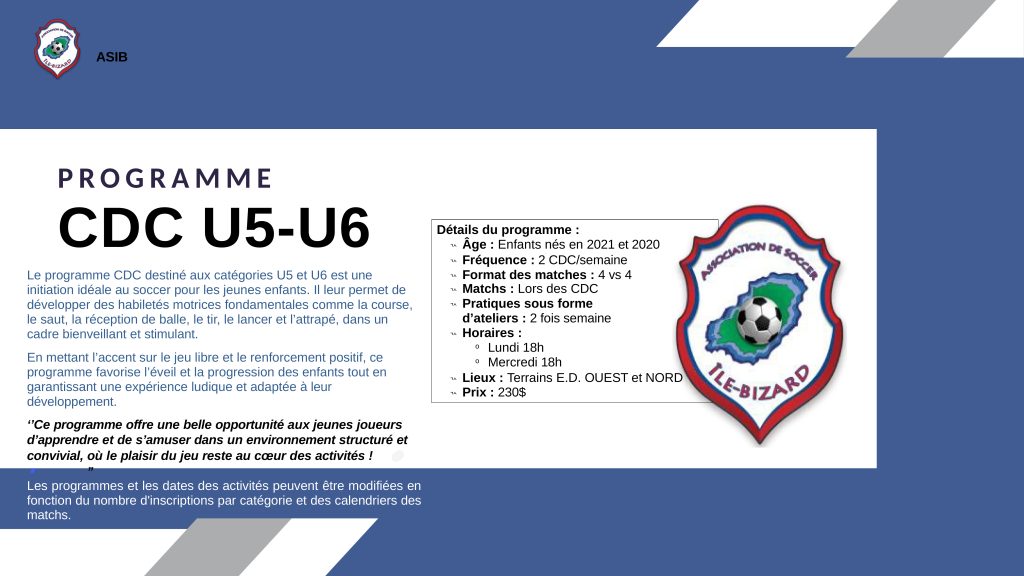 BÉNÉVOLES RECHERCHÉS: Les équipes seront formées en fonction du nombre de bénévoles. Votre participation est requise pour faire jouer les jeunes.