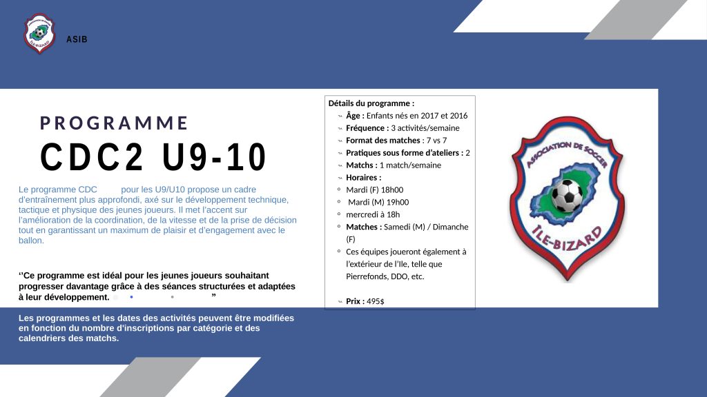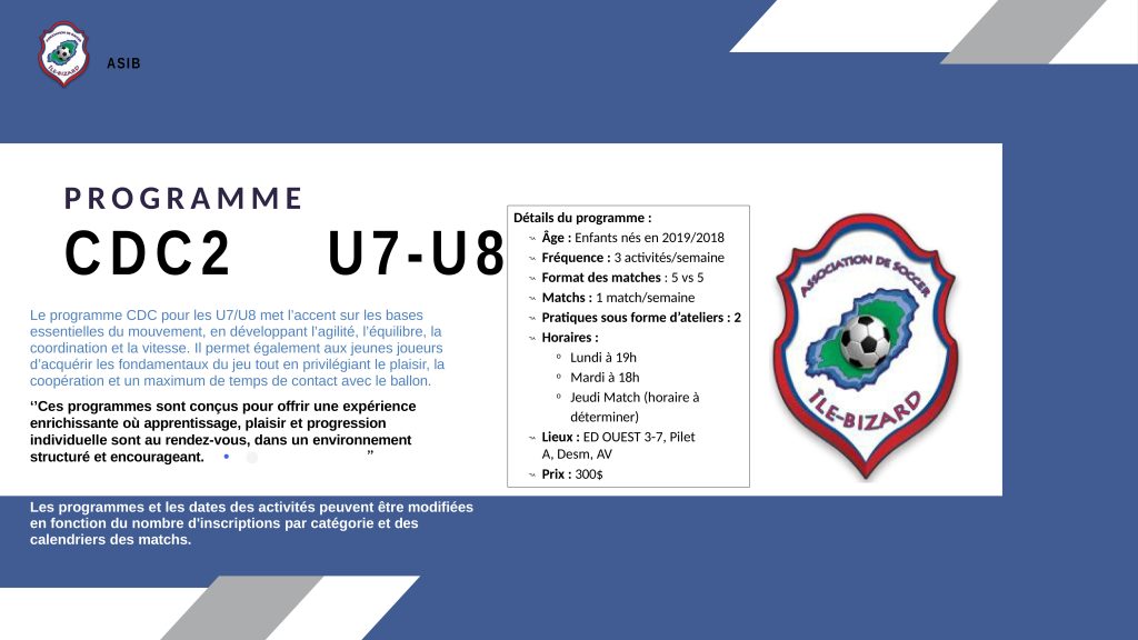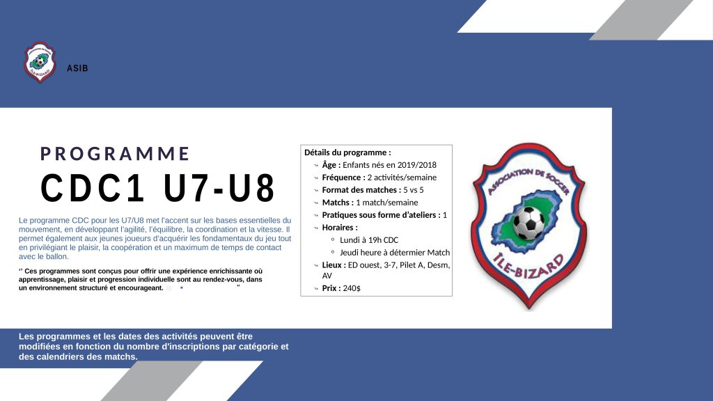 Veuillez prendre note que l’inscription se fera en ligne sur Spordle ou en présentiel aux dates mentionnées ci-bas.